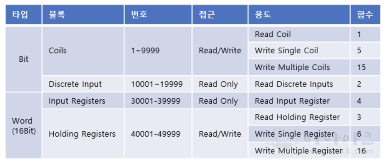 3) modbus 프로토콜 메모리맵과 함수 정리